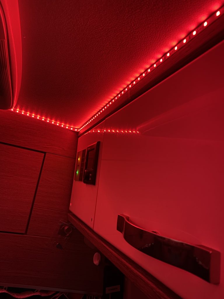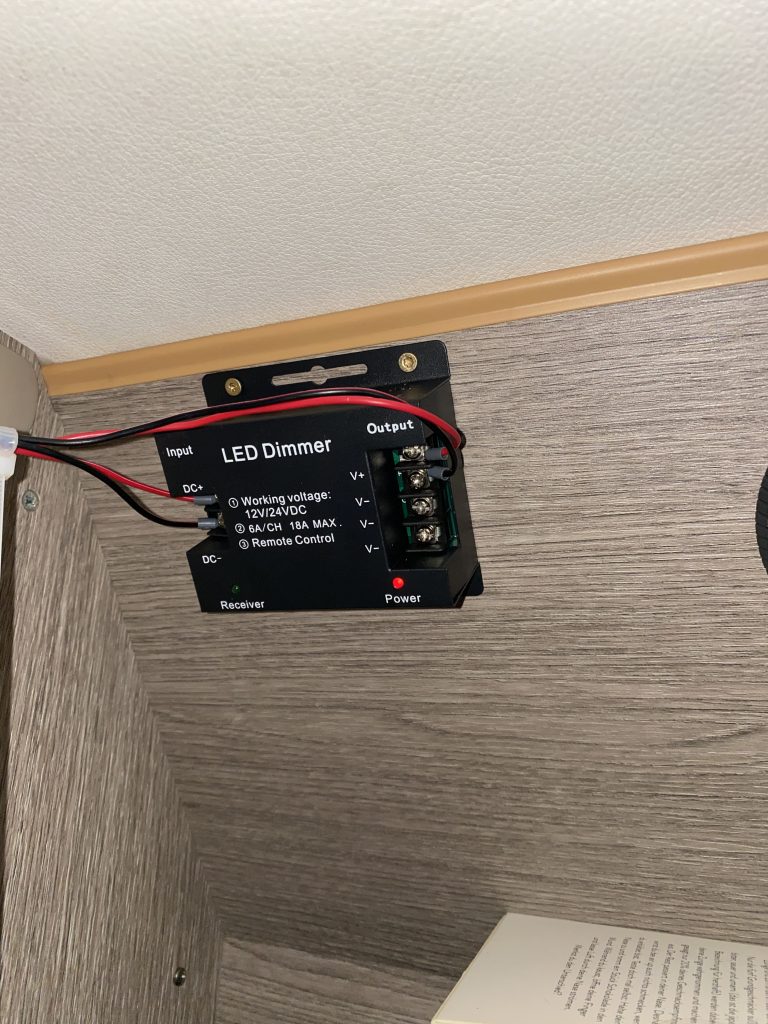 Beide Bereiche kann ich unabhängig voneinander ansteuern und so zwischen dem Wohn- und Schlafbereich unterscheiden. Der Einbau geht einem einfach von der Hand, das einzig „schwierige“ sind die Anschlußkabel vom LED Stripe. Diese sind sehr dünn und schwierig mit einer Aderendhülse zu befestigen.